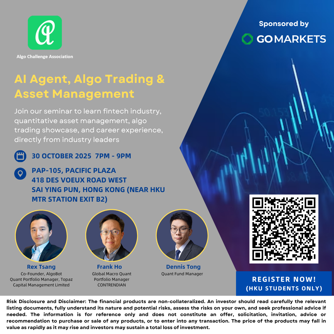 [AI Agent, Algo Trading & Asset Management]Join our seminar to learn fintech industry, quantitative asset management, algo trading showcase, and career experience, directly from industry leaders.